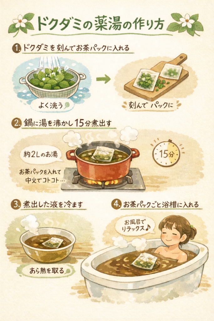 ドクダミで薬湯を作る