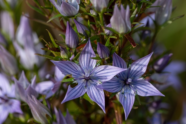ムラサキセンブリは、センブリよりも花が大きくて色は鮮やかな青紫色です。「イブニングスター」という名前で観賞用の花として栽培されています。