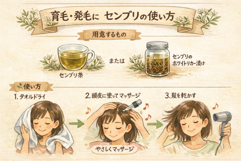この記事では、センブリの持つ効能や、お茶や粉末にして飲んだり頭皮へ塗るといった生活に取り入れやすい使い方などを紹介しています。
